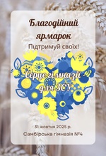 Завершуючи святкування 120-річчя Самбірської гімназії №4, запрошуємо вас на благодійний ярмарок “Серце гімназії — для ЗСУ”, який відбудеться 31 жовтня 2025 року.