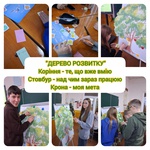 Восьмикласники працювали в групах, визначали свої сильні риси, обговорювали важливість підтримки та виконували вправи «Дерево розвитку», «Мої крила» й «Лист собі – мій політ через рік».