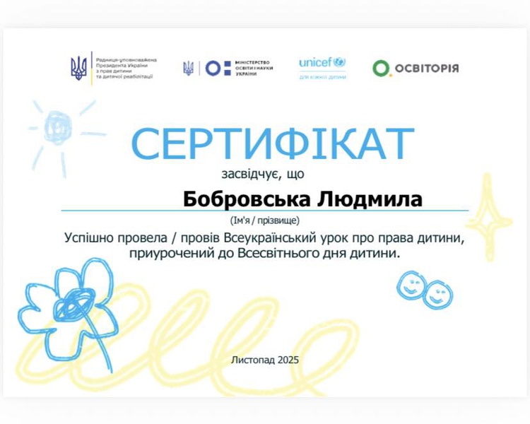 Учні активно працювали, творчо виконали завдання та показали чудові знання. Сертифікат став приємною відзнакою їхніх старань.