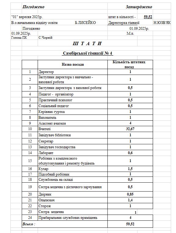 Список учителів СЗШ № 4 І-ІІІ ступенів м.Самбора